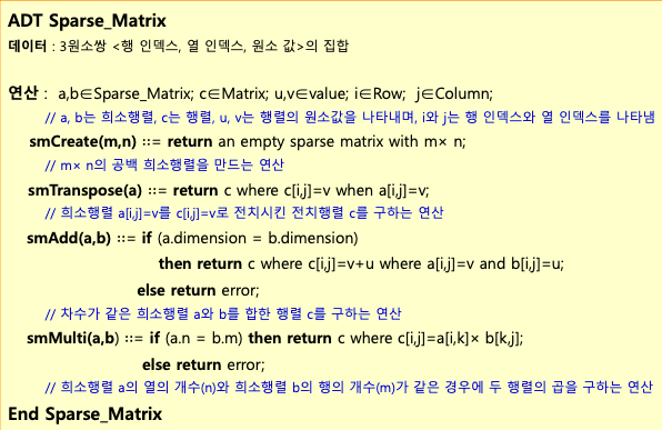 희소 행렬의 추상 자료형