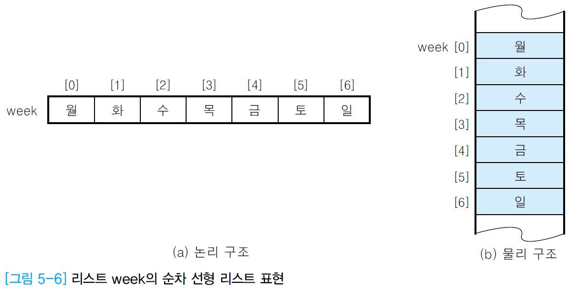 • 논리적인 순서와 물리적인 순서가 동일 ⇒ 원소의 위치를 찾아 접근하기 쉬움