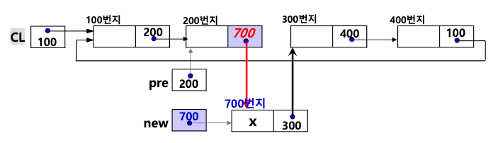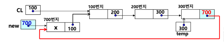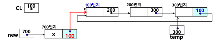 • 포인터 CL이 노드 new를 가리키게 한다.