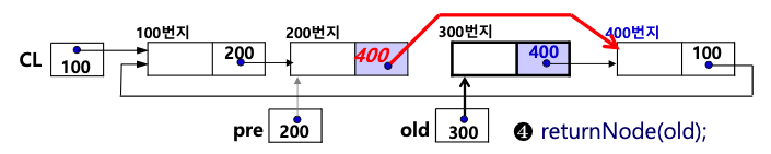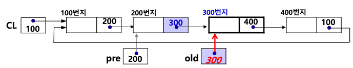 ❸<<삭제할노드old가원형연결리스트의첫번째노드인경우 >>