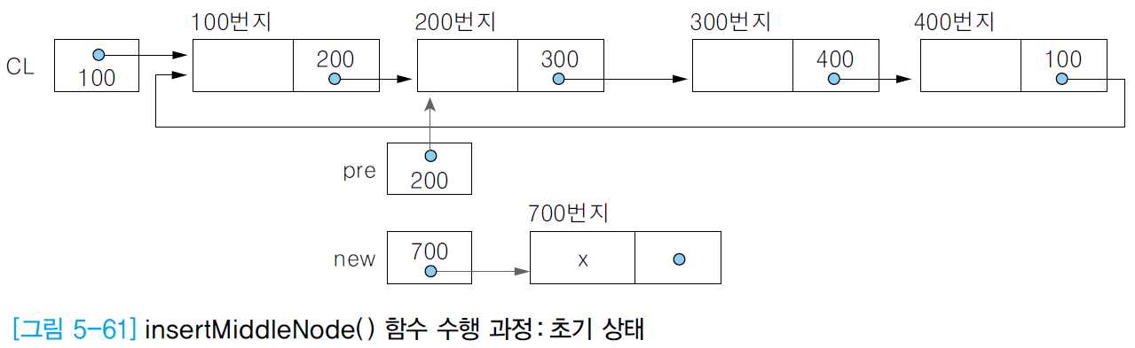• 삽입하는 노드new는 리스트의 첫 번째 노드이자 마지막 노드가 되어야 함