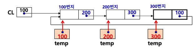 • 리스트가 공백리스트가 아닌 경우에는 첫 번째 노드의 주소를 임시 순회 포인터 temp에 저장하여 노드 순회의 시작점을 지정한다.