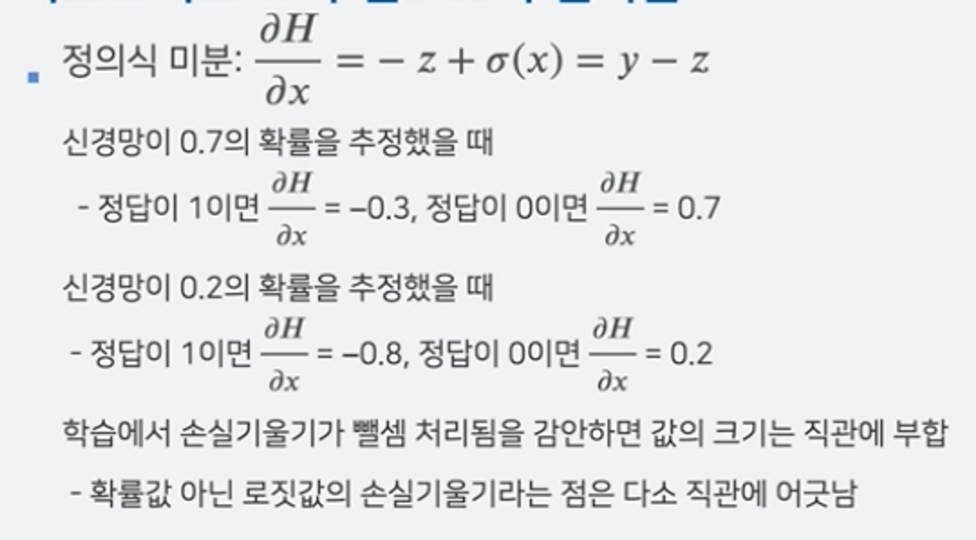 시그모이드 교차 엔트로피 편미분