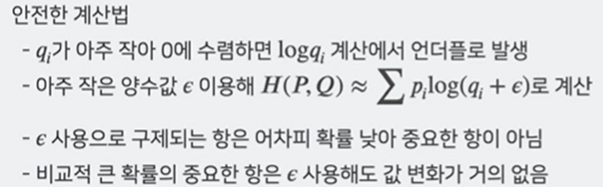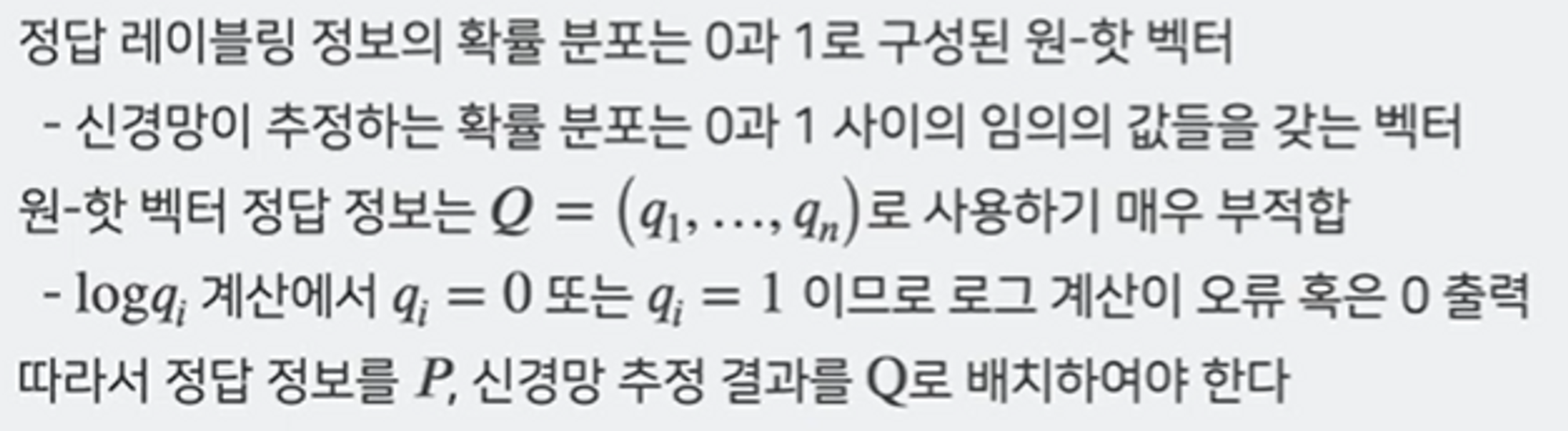 - 교차 엔트로피 계산에서의 확률 분포 배치