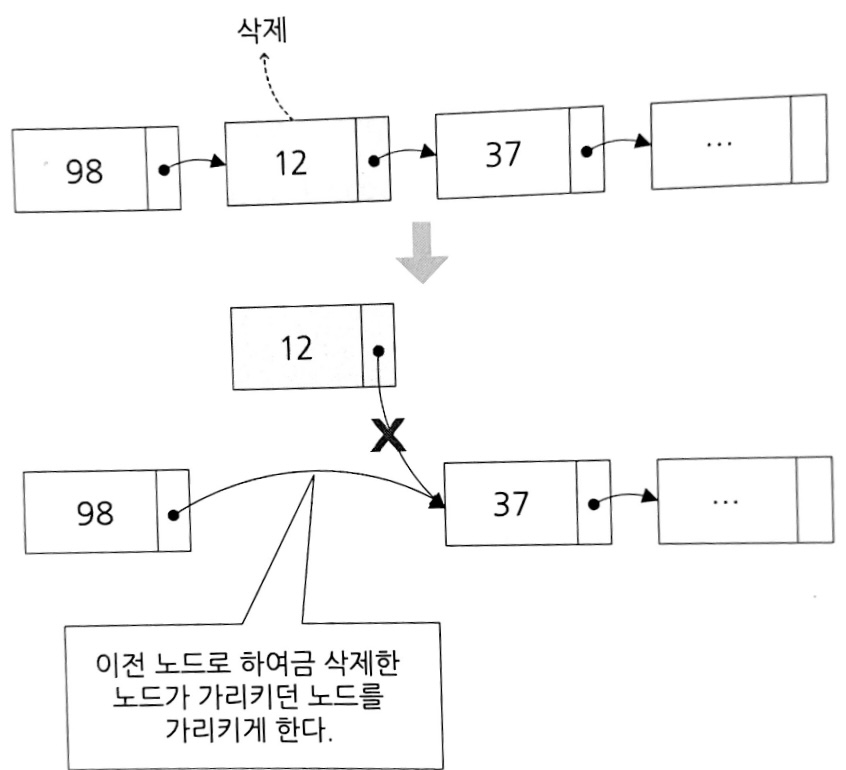 - 노드 삭제: 삭제하고자하는 노드를 찾은 후, 해당 노드의 다음 노드를 이전 노드의 포인터에 연결.