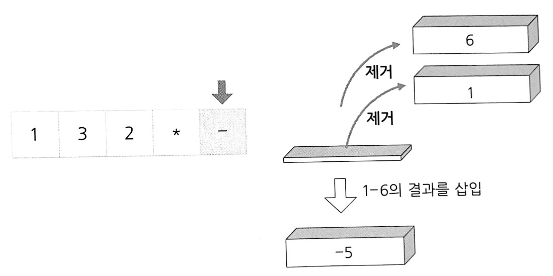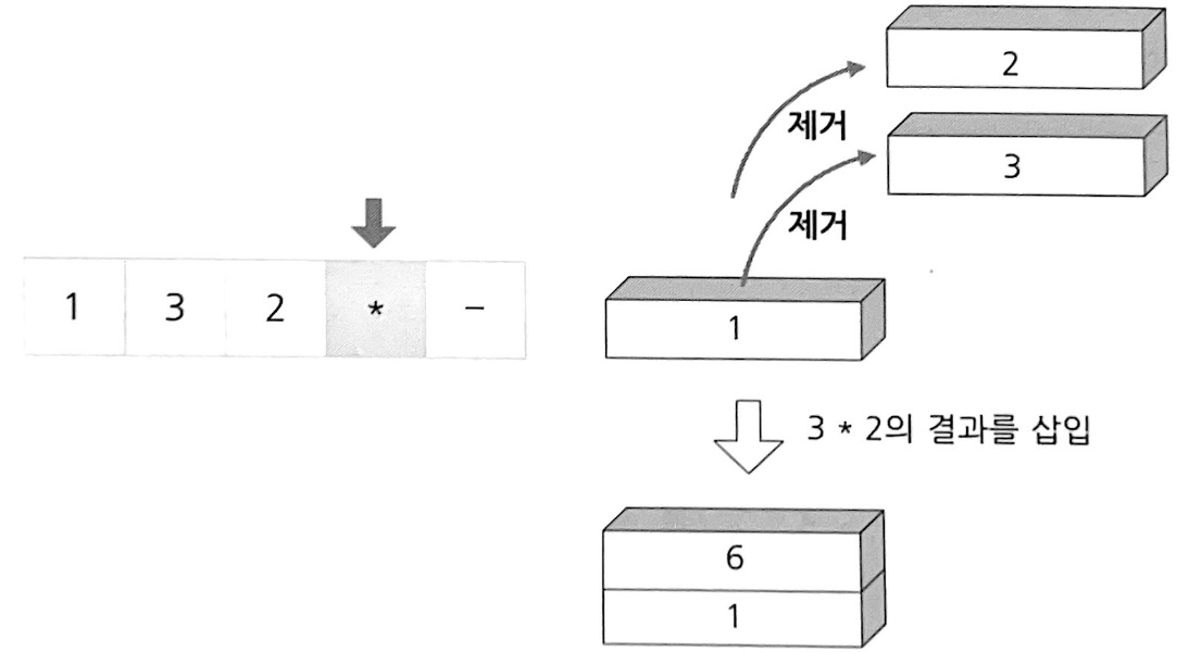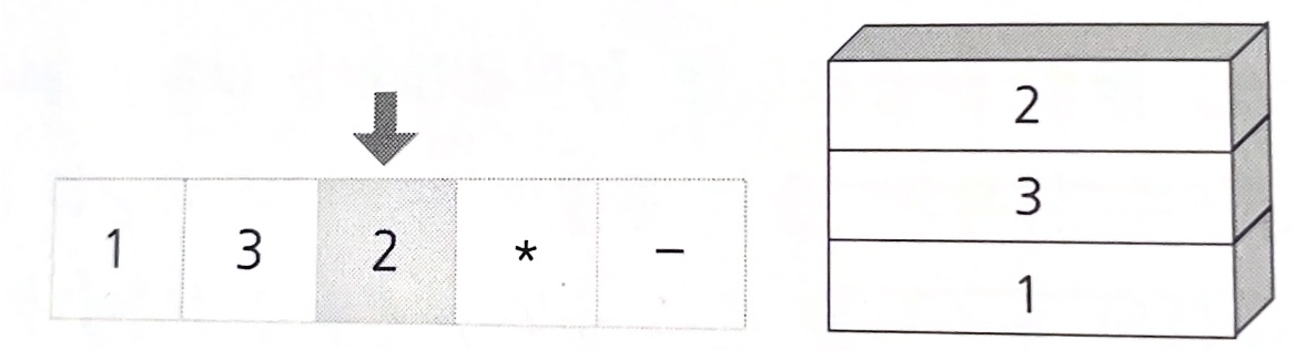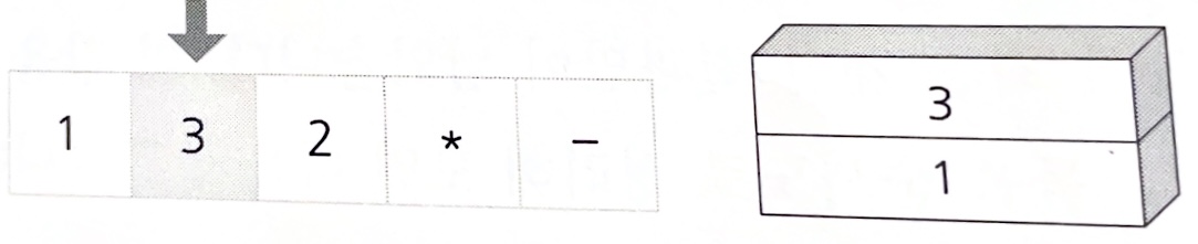 2. 연산자가 나타난 경우에 스택에서 피연산자 두 개를 꺼내 연산하고 그 결과를 다시 스택에 삽입