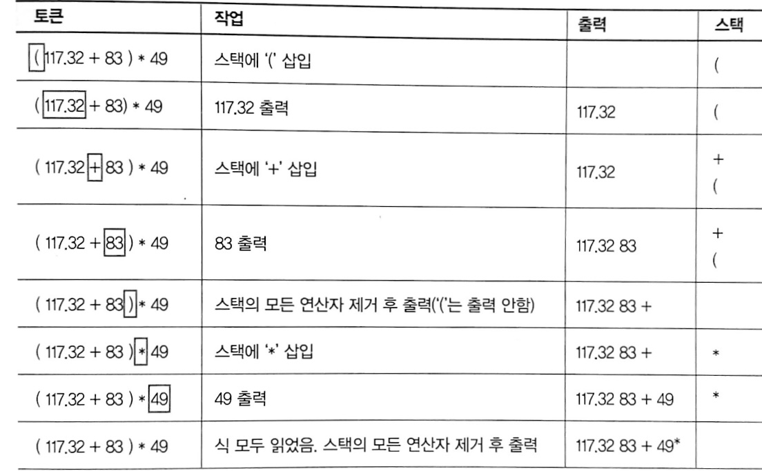 중위 -> 후위 표기법 변환 알고리즘