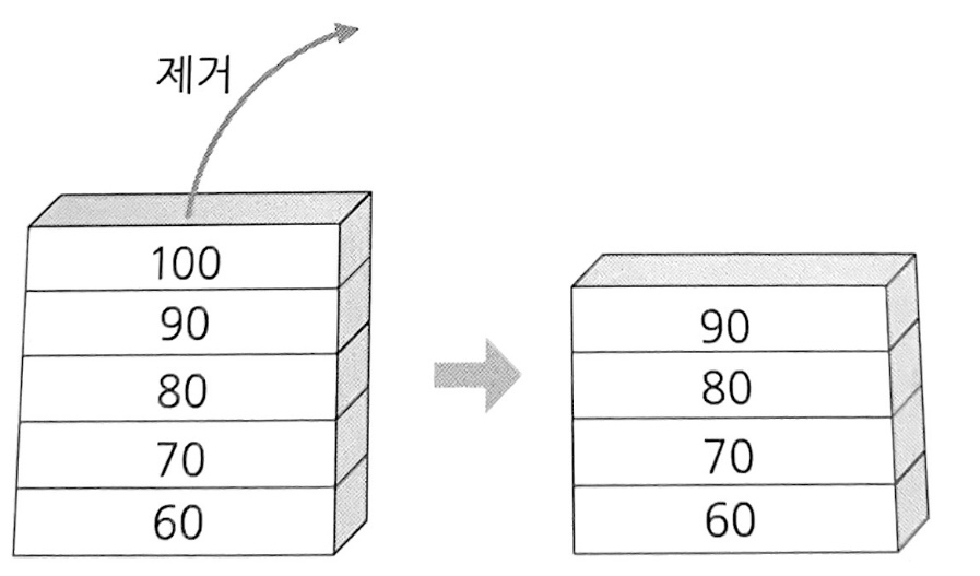 제거: 스택에서 최상위 노드를 걷어내는 작업