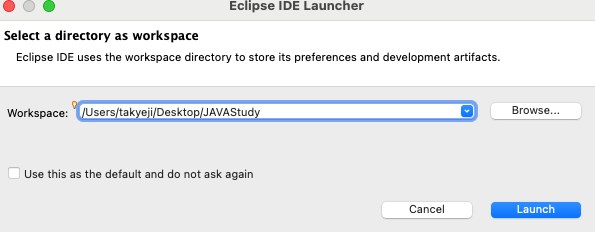 프로젝트가 기본적으로 저장될 워크스페이스 폴더 지정.