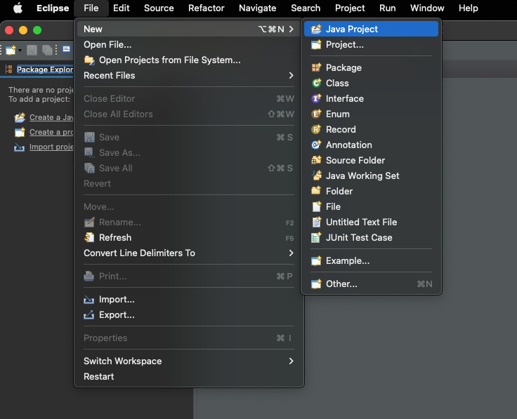 만약 [Java Project]가 안보이면 [Window]-[Perspective]-[Open Perspective]-[Java]를 선택해 java퍼시펙티브로 변경.