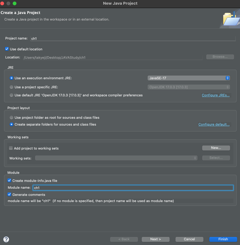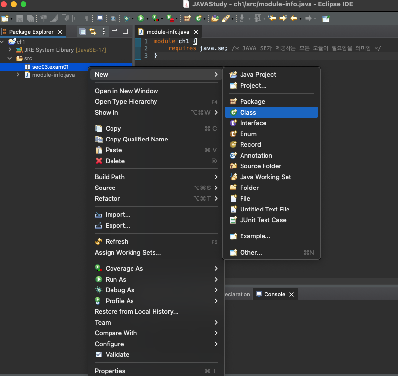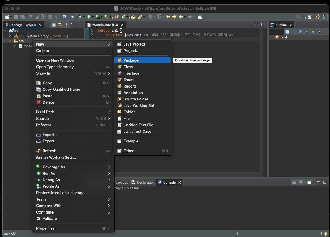 이 책으로 학습할 동안 모든 프로젝트의 module-info.java 편집뷰에 위와 같은 코드를 작성해야함.