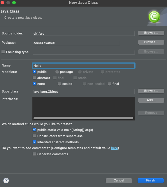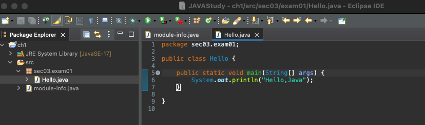 java -p bin -m chap01/sec03.exam01.Hello