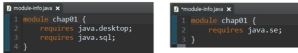 기본적으로 java.base 모듈만 사용 가능함으로 다른 모듈을 사용할 경우 의존 모듈로 등록해야 함.
