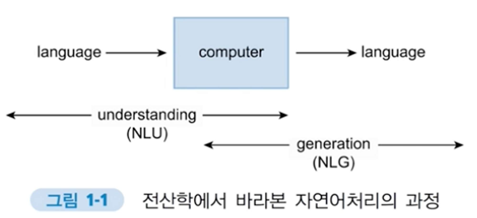 자연어 생성(natural language generation, NLG): 해당 의미를 언어로 생성하는 과정