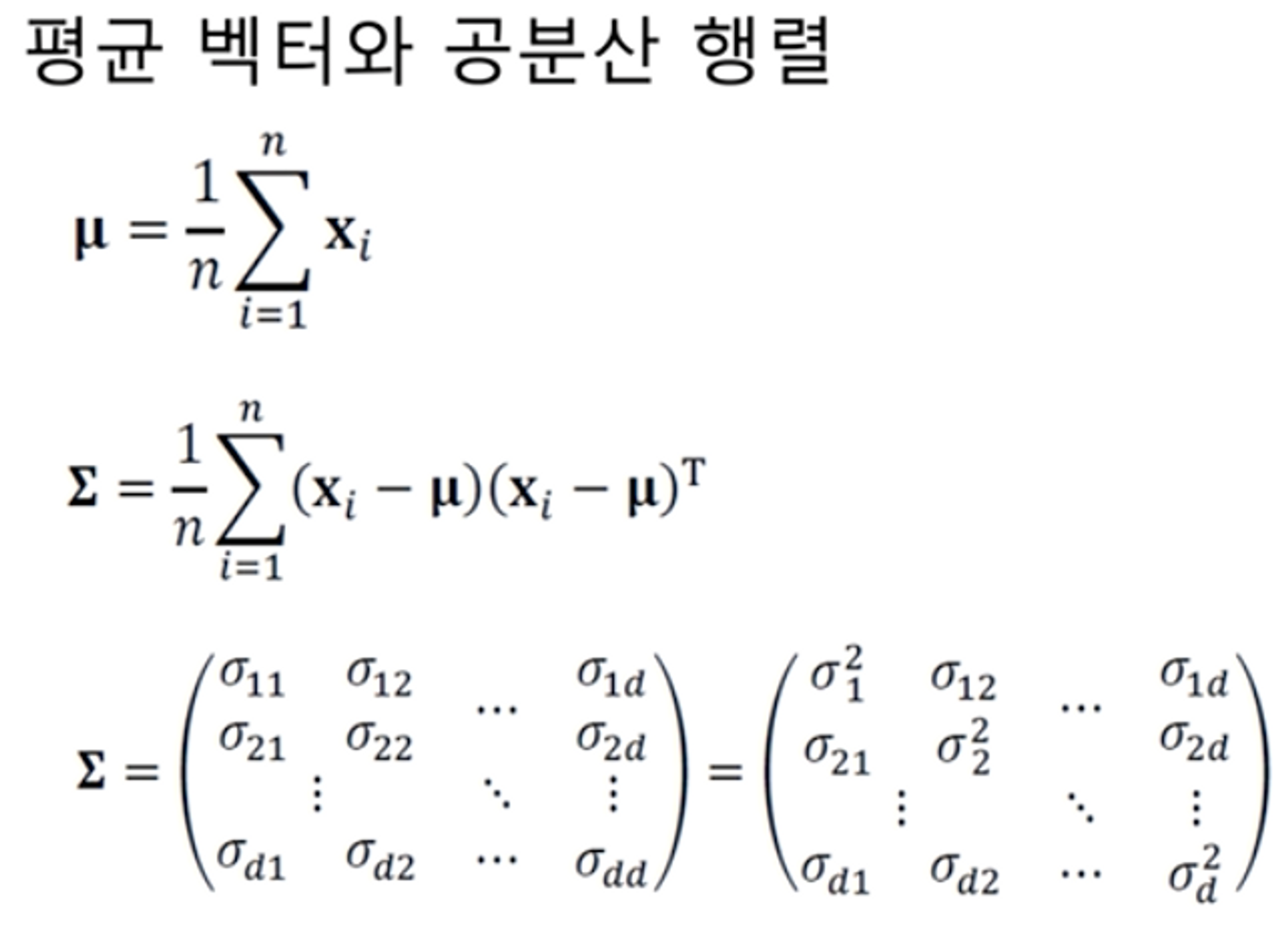 평균: u=각각의 데이터(xi)의 값들을 다 더한 다음 개수만큼 나눔.