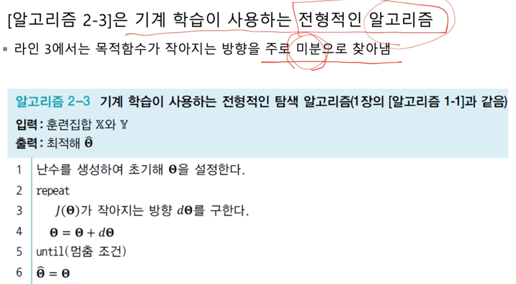 목적함수가 최저값이 되도록하는 세타(매개변수)를 계속 변경해 찾는것이(최적화 argmin) 기계학습에서 하고자하는 일.