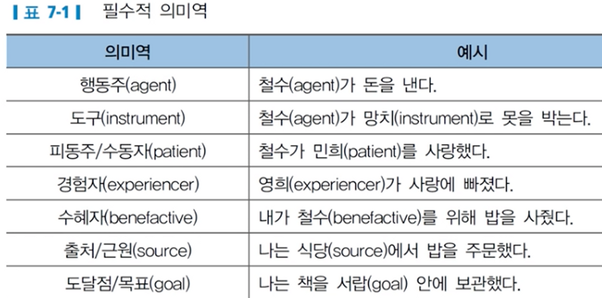 필수적 의미역: 서술어의 의미를 구성하는데 필수적으로 요구