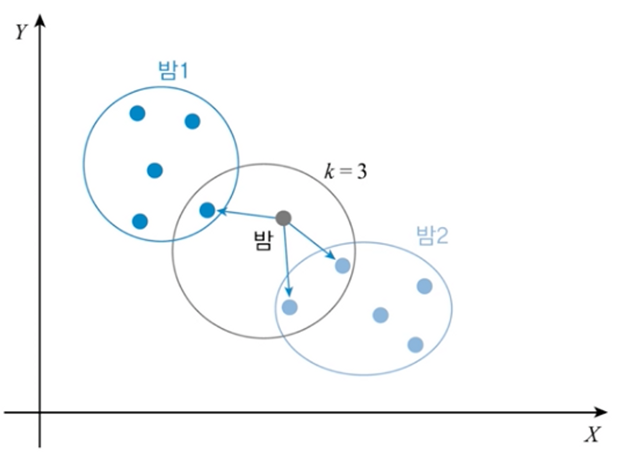 k개의 클래스가 있을때 가장 인접한 이웃을 찾는 방법.