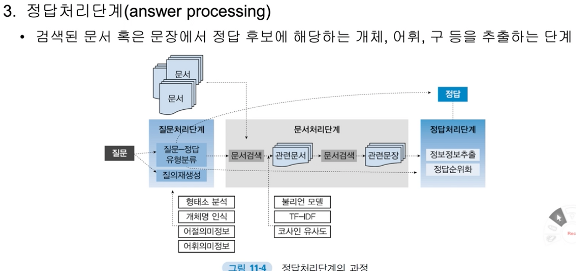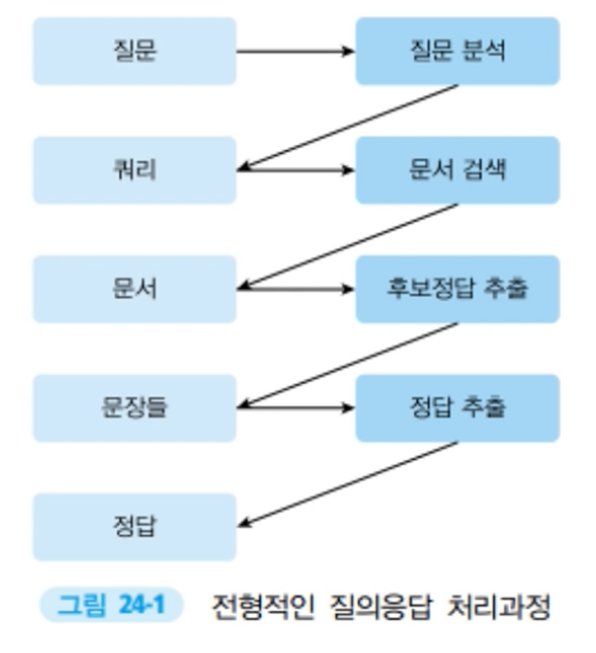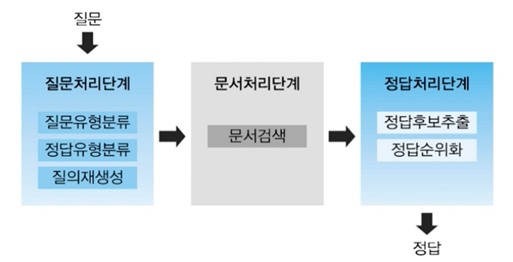 - 질의응답(QA)시스템: 책을 찾아 페이지까지 펴서 찾는 정보를 제시해주는 역할