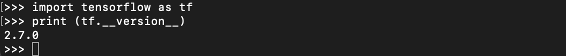 위의 명령어 입력시 기본적으로 최신 버전의 텐서플로 CPU버전이 설치되며, 뒤에 '==버전명'을 부이면 해당하는 버전이 설치됩니다.