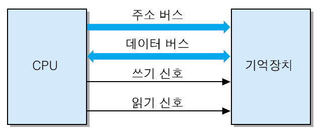 ▪ CPU가 데이터를 저장할 기억 장소의 주소와 저장할 데이터를 각각 주소 버스와 데이터 버스를 통하여 보내는 동시에, 쓰기 신호를 활성화