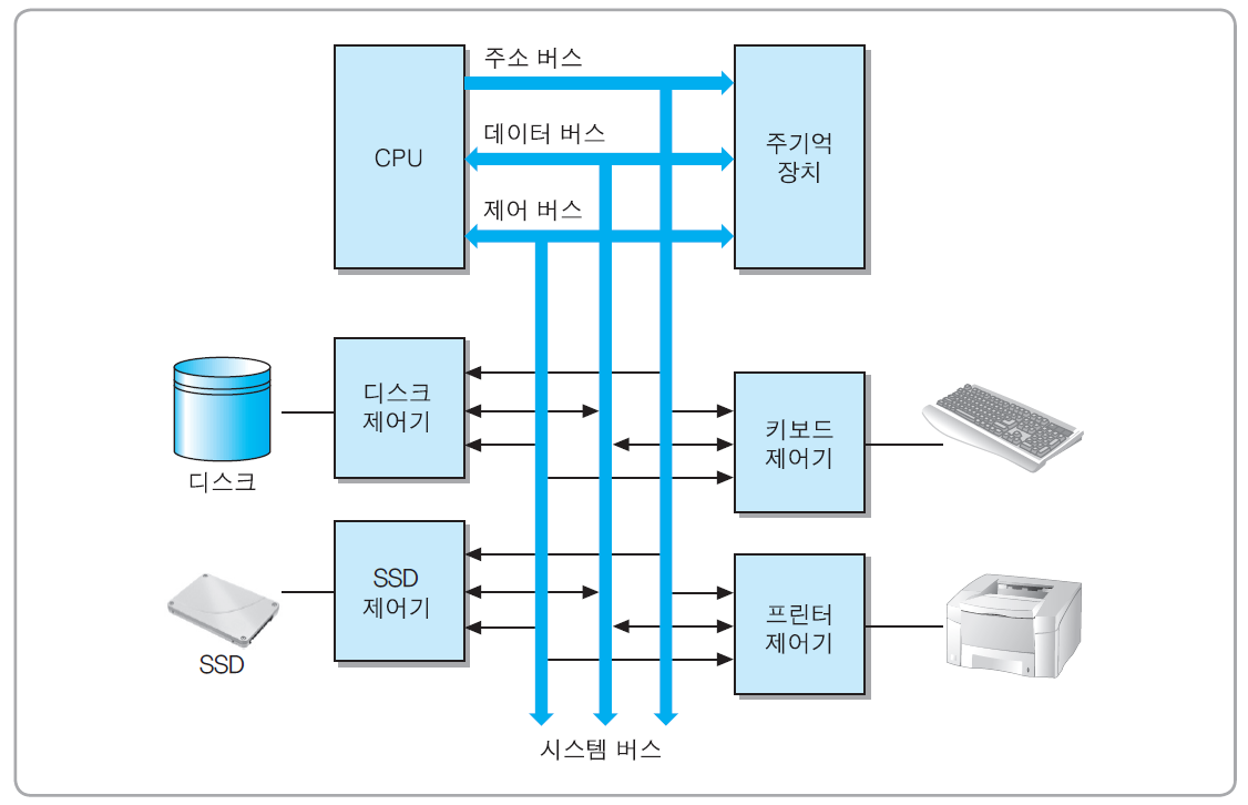 ▪ CPU ↔ 시스템 버스 ↔ I/O 장치 제어기 ↔ I/O 장치