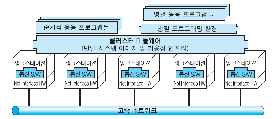 ▪고속 LAN이나 네트워크스위치에 의해 서로 연결된 PC들 혹은 워크스테이션들의 집합체