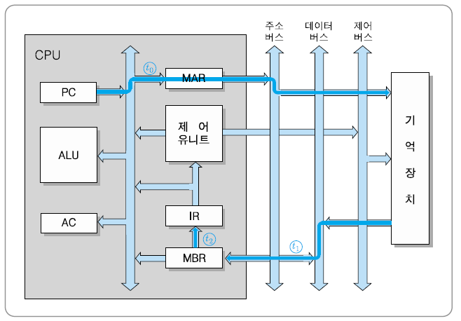 ➢CPU가 기억장치로부터 명령어를 읽어오는 단계