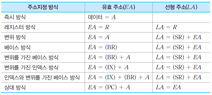 ➢유효 주소(EA)가 레지스터에 들어 있는 방식