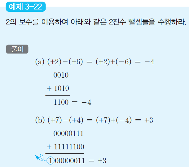▣ 2의 보수로 표현된 수들의 덧셈 방법