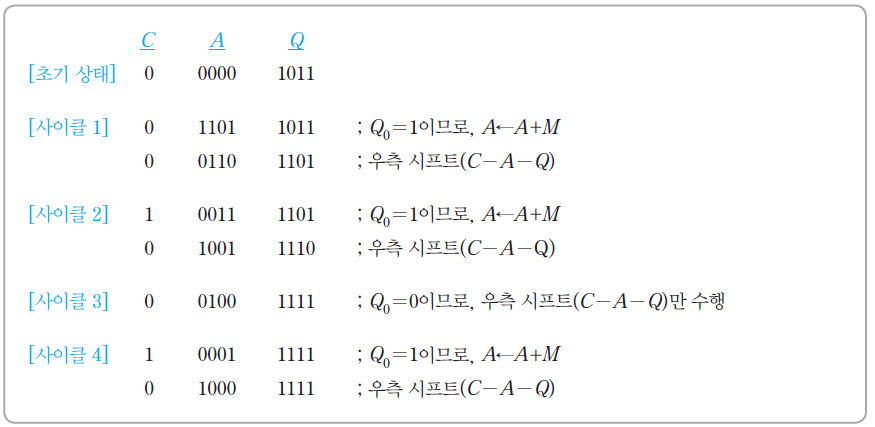 ➢Q 레지스터의 우측에 Q-1 이라고 부르는 1-비트 레지스터를 추가하고, 출력을 Q0와 함께 제어 회로로 입력