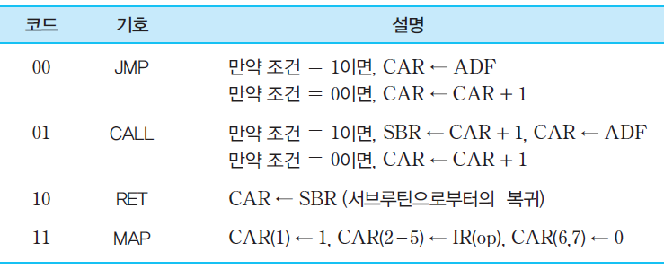 ▪ RET : 서브루틴으로부터 복귀(SBR에 저장된 내용을 CAR로 적재)