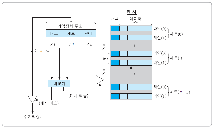 ▣ 기억장치 주소의 세트 필드의 s 비트들을 이용하여 캐시 세 트들 중의 하나를 선택