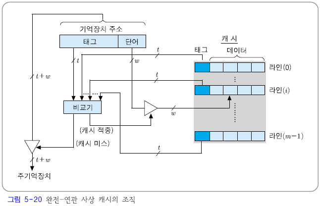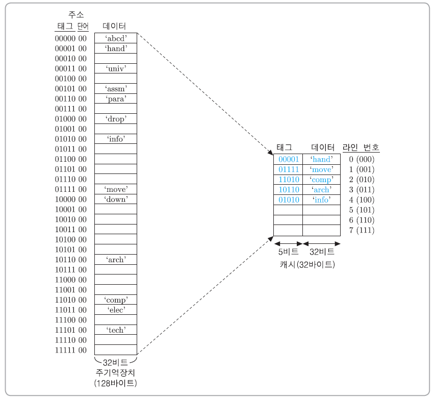 ▪캐시 라인들의 태그들을 병렬로 검사하기 위하여 가격이 높은 연관 기억장치(associative memory) 및 복잡한 주변 회로가 필요
