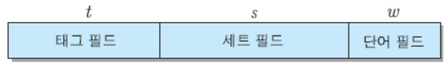 ▪ 태그 필드와 세트 필드를 합한 (t+s)비트가 주기억장치의 2(t+s)블록들 중의 하나를 지정