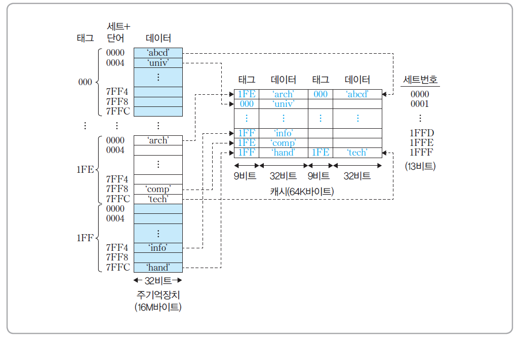 큰 용량의 세트-연관 사상 캐시 조직의 예