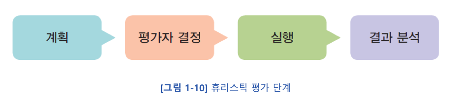 • 휴리스틱 평가(Heuristic Evaluation): 인간의 직관이나 경험에 기반하여 문제를 해결하거나 학습, 발견하는 방법을 지칭