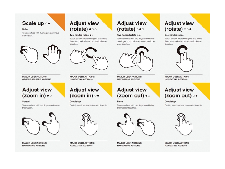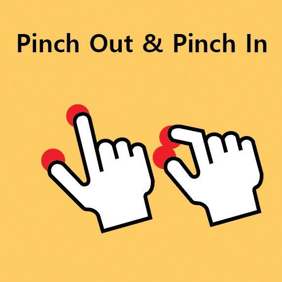 • 핀치(Pinch): 두 손가락을 양방향으로 벌리거나 오므리는 동작, 화면 확대나 축소에 사용. 손가락이 움직이는 거리에 따라 확대나 축소 비율이 결정.