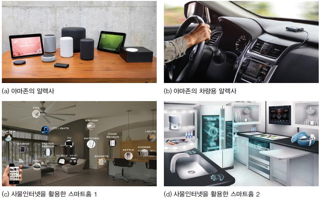 - 사물인터넷(Internet of Things, IoT) : 각종 사물에 센서와 통신 기능을 내장하여 인터넷에 연결하는 기술. => IoE (Internet of Everything)